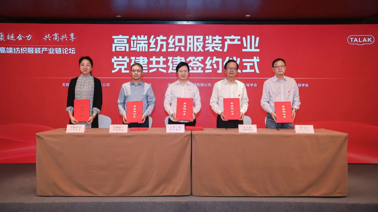 活动现场,我司与无锡一棉纺织集团有限公司与江苏省纺织工程学会、无锡纺织工业协会、无锡市纺织工程学会共同签署了《党建共建协议书》,签约各方将扩大交流,深度合作,优势互补、携手共赢,进一步把党的政治优势和组织优势转化为产业发展优势,激活产业链上“内生力”。